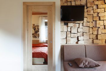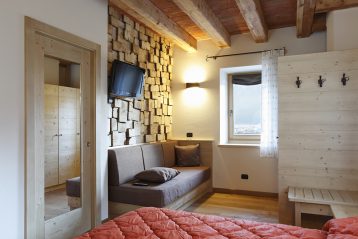 La camera dei ricordi, che si affaccia sulla fattoria, può ospitare fino a tre persone, grazie ad un comodo divano letto. Su richiesta, è disponibile in aggiunta la culla per bambini.